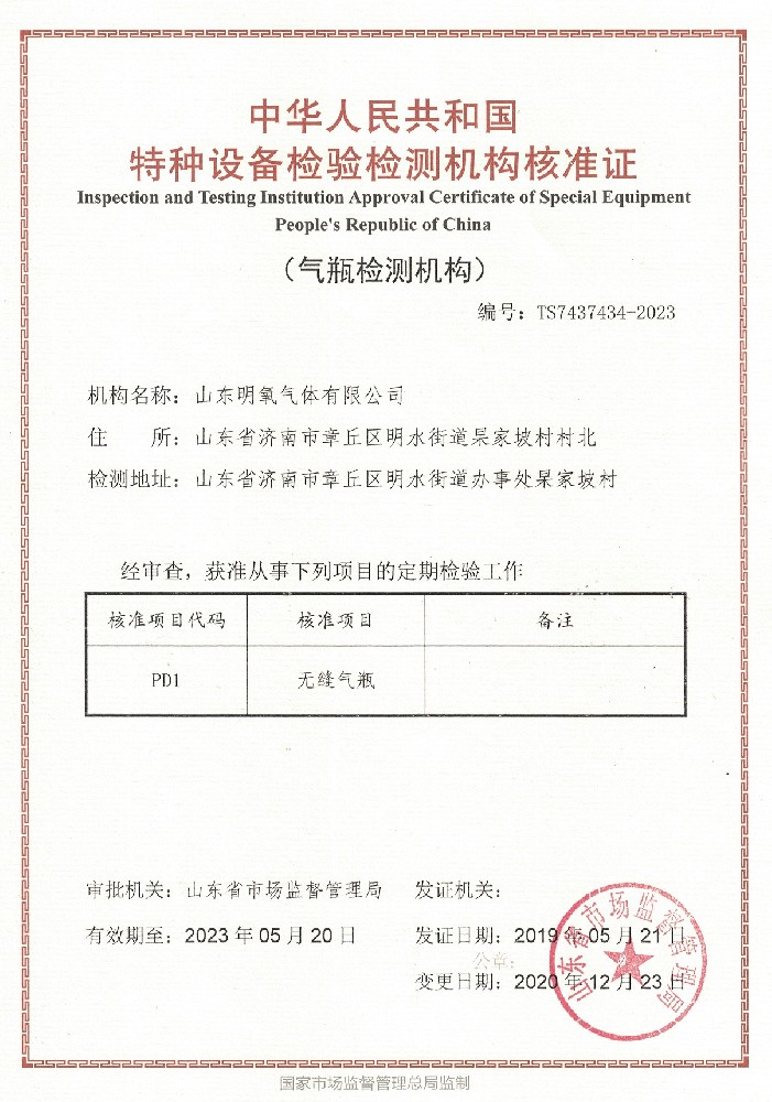 ??? 山東明氧氣體有限公司的前身為始建于1993年的章丘市明水氧氣廠,2020年12月企業(yè)由民營(yíng)獨(dú)資轉(zhuǎn)型升級(jí)為山東明氧氣體有限公司,企業(yè)進(jìn)入新的發(fā)展階段。公司位于山東省濟(jì)南市章丘區(qū)明水街道杲家坡村村北,占地面積4000平方米,注冊(cè)資金500萬(wàn)元,固定資產(chǎn)投資3000萬(wàn)元,主要經(jīng)營(yíng)項(xiàng)目為醫(yī)用氧氣、工業(yè)氧氣、氮?dú)?、高純氮?dú)?、氬氣、高純氬氣、高純氦氣、二氧化碳、混合氣體等各種工業(yè)氣體、高純氣體、混合氣體的充裝銷售、各類氣瓶的銷售、安全閥校驗(yàn)、鋼質(zhì)無(wú)縫氣瓶的檢驗(yàn)等。